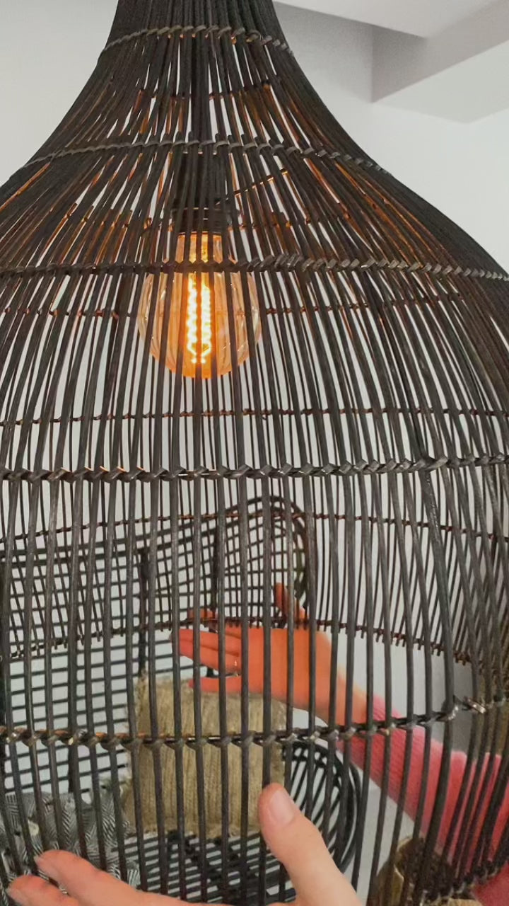 Hängen Sie sie einzeln oder in einer Reihe über einer Küchentheke, einem Badezimmer, einem Schlafzimmer, einer Außenterrasse oder einer Dachterrasse auf, um einen Blickfang zu schaffen. Die Bob Lamp wird von indonesischen Kunsthandwerkern aus natürlichem Rattan hergestellt, was ihr eine angenehme Ausstrahlung verleiht, die Wärme in jedes Arrangement bringt. Das Hauptmerkmal der Lampe ist ihr unverwechselbares Design, das ein zeitloses Ambiente sowie einen Hauch von tropischem Geist und Freundlichkeit in den Raum bringt. Der natürliche Farbton der Lampe passt zu jeder Einrichtung. Sie passt zu traditionellen, modernen, böhmischen und Strandhausstilen. Jede Bob Lamp hat einen Lichtverlängerer. Die Bob Lamp ist eine handgeflochtene Deckenlampe aus hochwertigem Naturrattan, die in zwei Farben erhältlich ist: Natur und Schwarz. Unsere Lampen haben nicht nur eine Lichtfunktion, sondern dienen auch als dekoratives Element für die Inneneinrichtung. Die Präzision der Verarbeitung in Verbindung mit dem originellen Design schafft ein natürliches, einzigartiges Element in vielen Stilen.