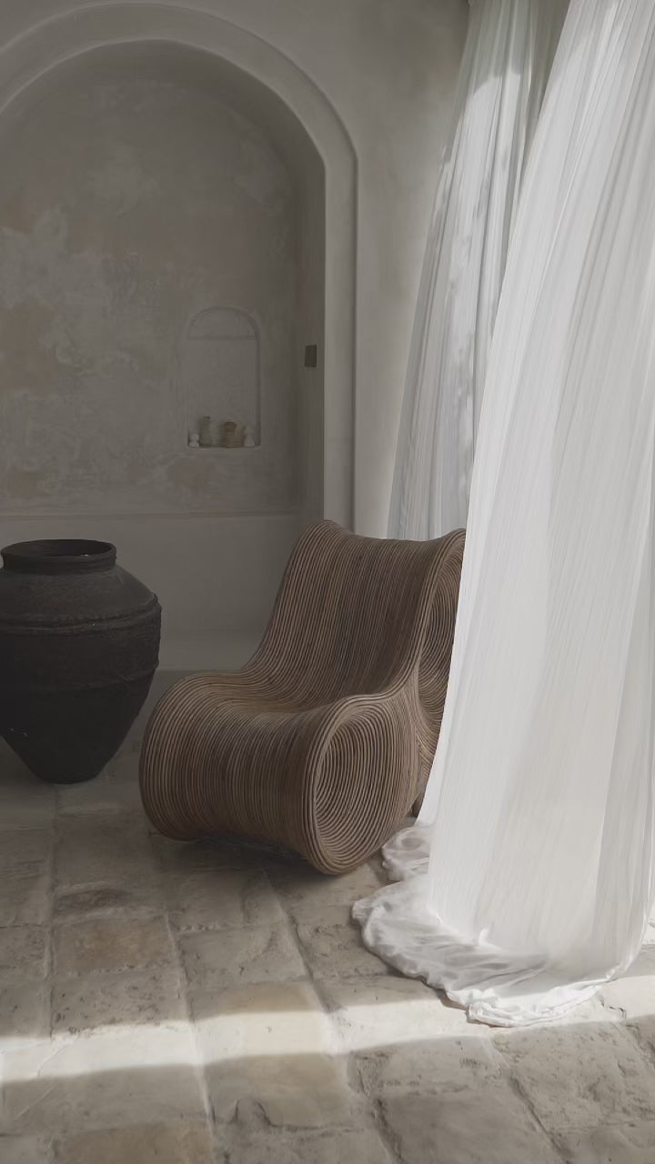 Das Robin Rattan Deckchair Set ist ein moderner Deckchair mit überraschender Form. Er wurde aus hochwertigem Naturrattan handgefertigt. Seine ergonomische Form bietet dem Benutzer maximale Bequemlichkeit und Komfort. Er zieht die Aufmerksamkeit auf sich und verleiht jedem Arrangement Stil.